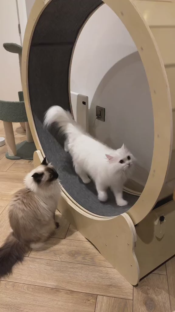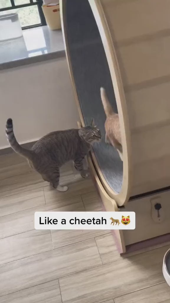 Get your cat moving with our top-rated cat wheel! This rotating cat runner wheel provides endless fun and stimulation .With a spacious 36–39″ internal diameter, safety-first design, and durable build, it’s the best cat exercise wheel for every feline type. Order now and bring the excitement home - Made in the USA!